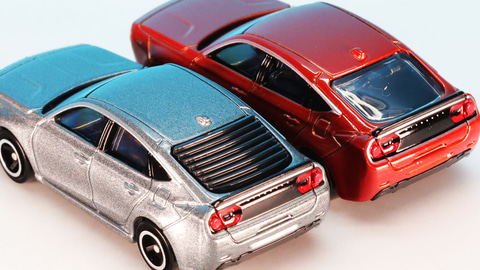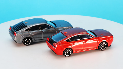 ボディ中央はFL型シビックとほぼ同じ形をしており、ボンネットやフロントマスク、リア周りがごっそりミツオカのデザインが施されることでここまで印象が変わるのかと楽しくなります。トミカでは「No.78 ホンダ シビック TYPE R(2022/12)」が登場しているのでこちらをお持ちであればどこがどのように変化しているのかを見比べるのも楽しいと思います。