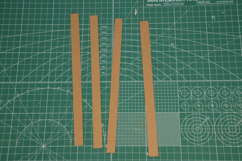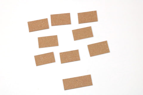 素材はレンガにも見える「クラフトボード(A4)」を使用する。こちらを幅1cm、縦2cm大にカットしていき、レンガ風のチップを複数作成する。