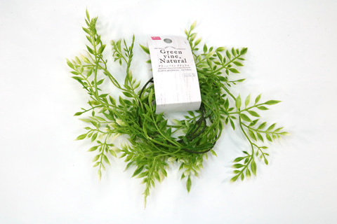 そして、インテリア造花の「グリーンバイン ナチュラル」の葉っぱを使用する。葉の茎部分をニッパーで切り、植え込みに差し込んでいくシンプルな手順で、簡単に作ることができる。