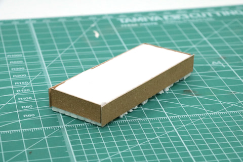次に植え込みを作成していく。上記の発泡板の余りとクラフトボードで植え込みを作ることができる。作成工程は好きなサイズに切った発砲板の周りをクラフトボードで囲う。