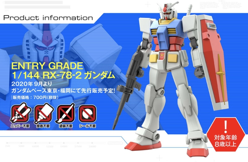 9月4日ガンダムベースにて先行販売! 入門用ガンプラ「ENTRY GRADE 1/144 RX-78-2 ガンダム」、説明書表紙を公開