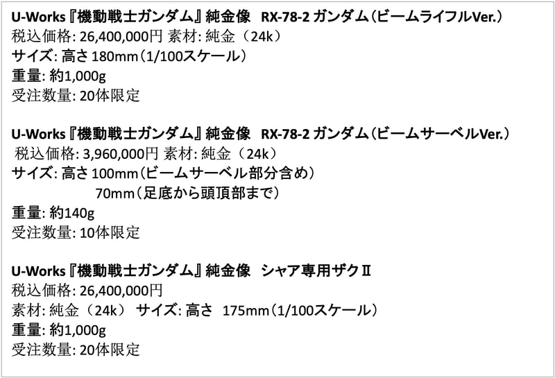 純金ガンダム&シャアザクの特設ページオープン!