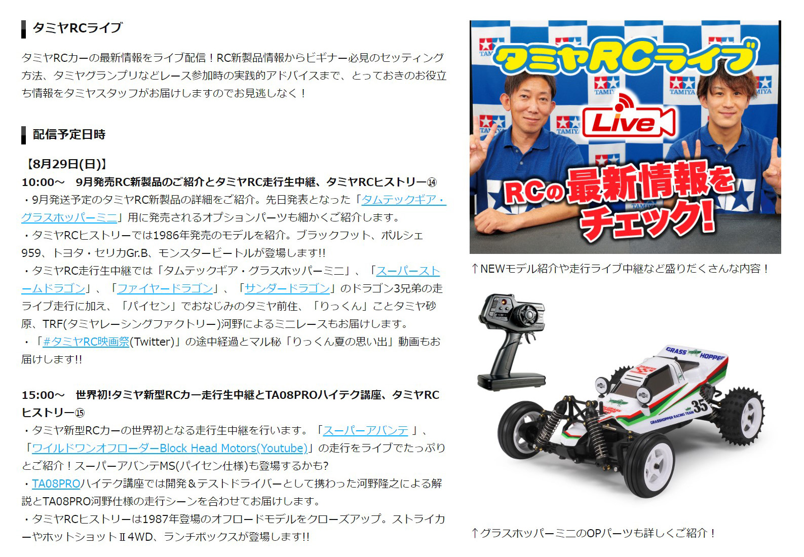 ライブ番組「タミヤRC LIVE」、本日10時より2日間にわたって配信スタート!