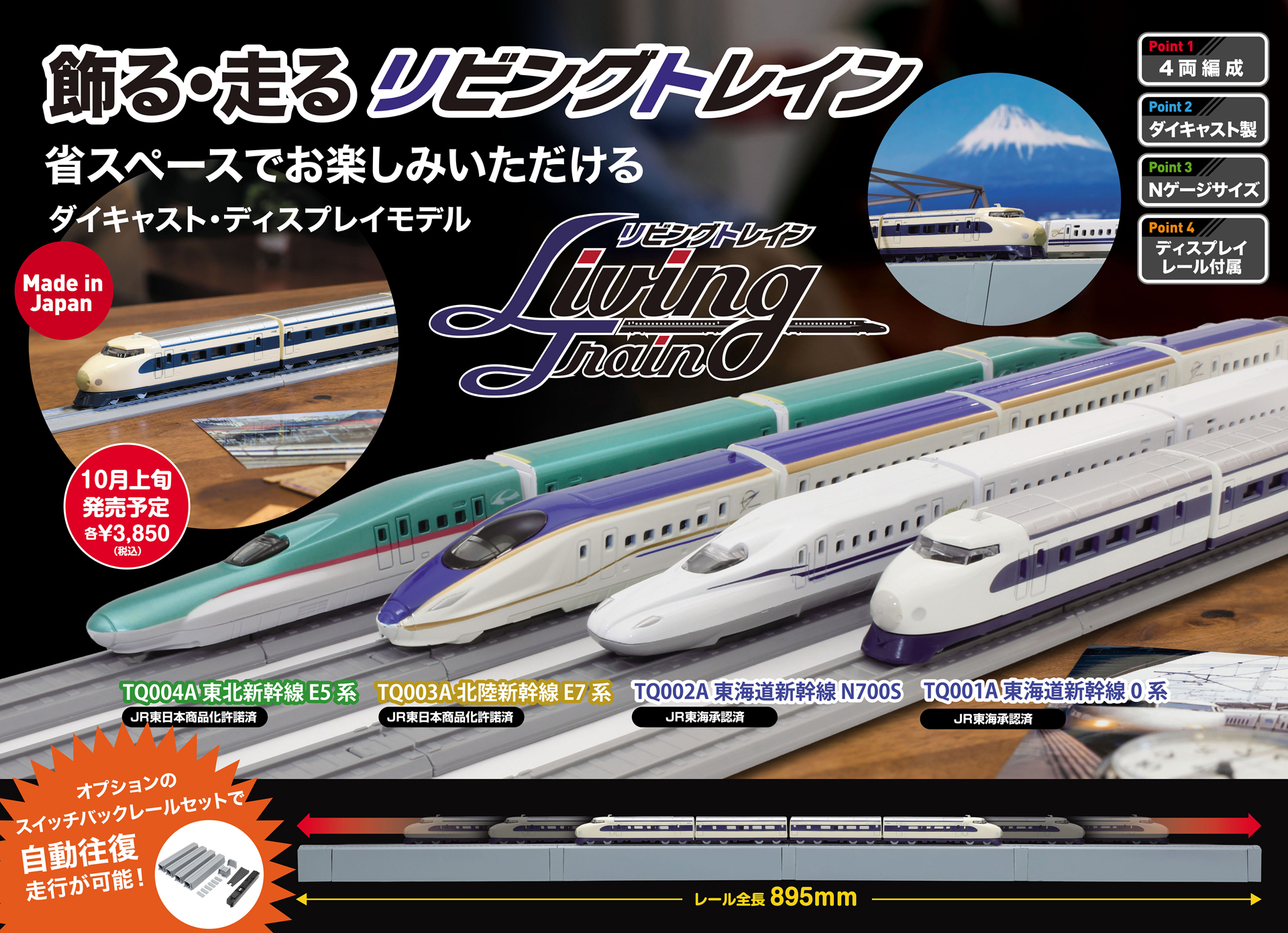 【静岡ホビーショー】気軽に新幹線の走行姿を楽しめる! 京商エッグの「リビングトレイン」は間口の広い鉄道模型の新提案!