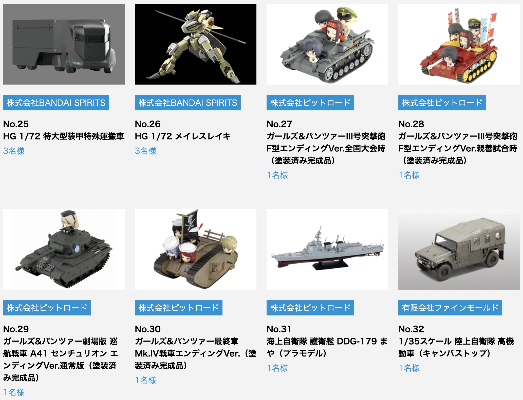 ©TYPE-MOON / FGO PROJECT ©KOTOBUKIYA ©KOTOBUKIYA・RAMPAGE ©Masaki Apsy ©TOKYO MARUI Co.,Ltd. All rights reserved.  ©サンライズ ©Licensed by ISUZU ©高千穂&スタジオぬえ・サンライズ ©2021 SUNRISE BEYYOND INC. (C) GIRLS und PANZER Projekt  (C)GIRLS und PANZER Film Projekt   (C) GIRLS und PANZER Finale Projekt