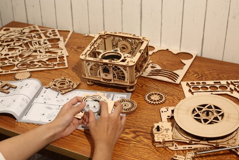 「つくるんです」史上初!本物のレコード盤を再生できるウッドパズル「奏でる蓄音機」が登場(10/11)
