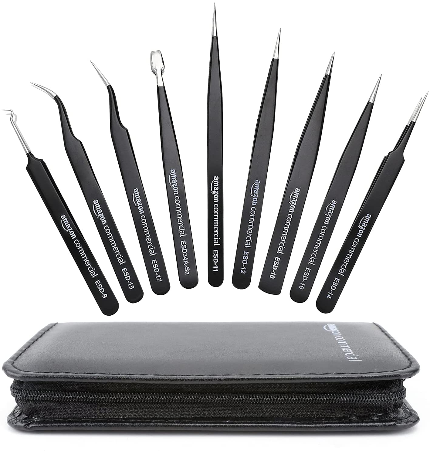 • AmazonCommercial ピンセット ステンレス製 9個セット 非磁気 帯電防止ESDチップ付