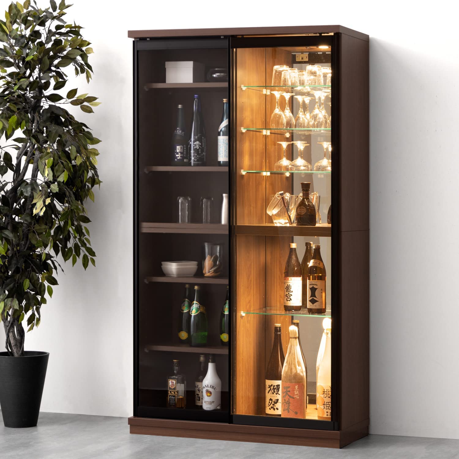 • タンスのゲン コレクションケース 収納 高さ170cm スライド扉 LEDライト 背面ミラー 耐震ダボ 可動棚 03160178 00 (78615)【超大型商品】