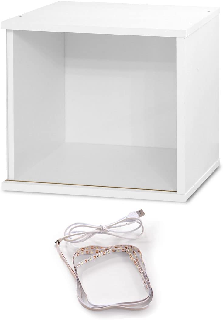 • ottostyle.jp 組み合わせ自由 キューブボックス カラーボックス 【アクリル扉付きタイプ/ホワイト】 & LEDテープライトセット 横幅34.5cm レイアウト自在 ディスプレイボックス コレクションケース 収納