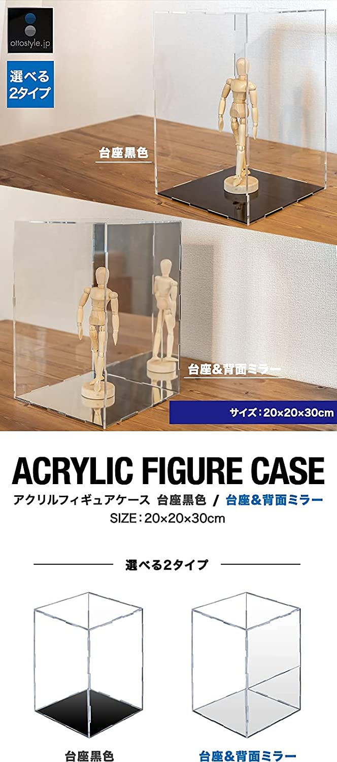 • ottostyle.jp アクリルフィギュアケース 20cm×20cm×30cm 【台座黒&背面クリア】 コレクションケース ディスプレイケース 展示 陳列 卓上 長方形 フィギュア プラモデル 埃 汚れ 防止 組立式 アクリルケース