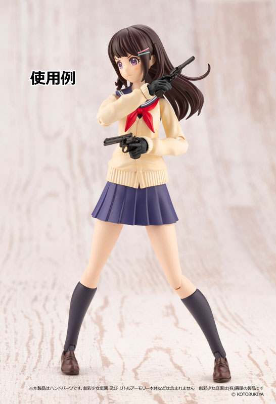 プラモパーツ「創彩少女庭園用タクティカルグローブ」2種予約開始! 「リトルアーモリー」の銃火器を持たせタクティカルなポーズを可能に(9/12)