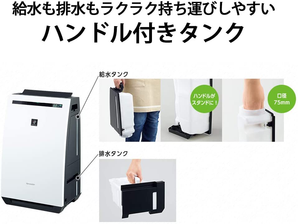 • シャープ 除湿機 兼 加湿空気清浄機 除湿 9L / プラズマクラスター 7000 スタンダード 18畳 / 空気清浄 32畳 ホワイト KC-HD70-W