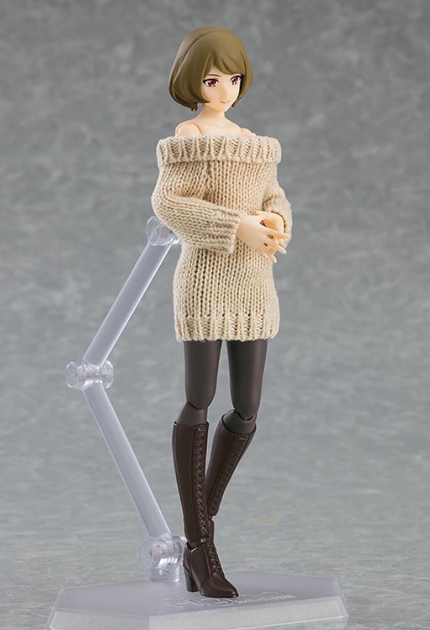 胸元チラリなシチュエーションも! 「figma 女性body(チアキ) with オフショルセーターワンピ」予約開始(4/11)