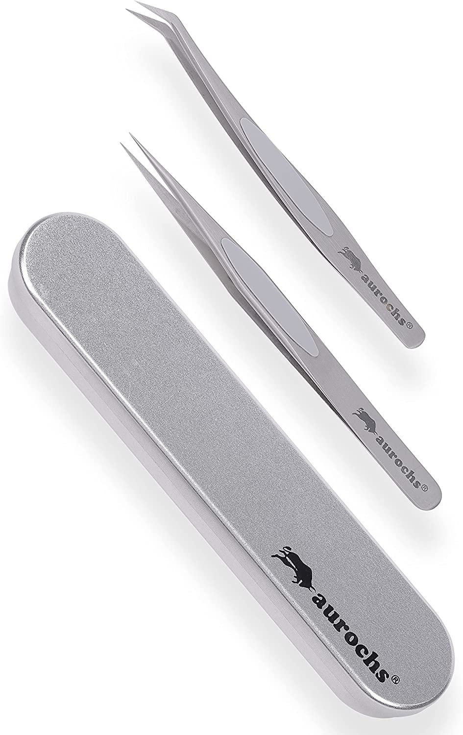 • aurochs 極ツマミ 精密 ステンレス ピンセット ストレート 先曲がり 2本セット ケース付