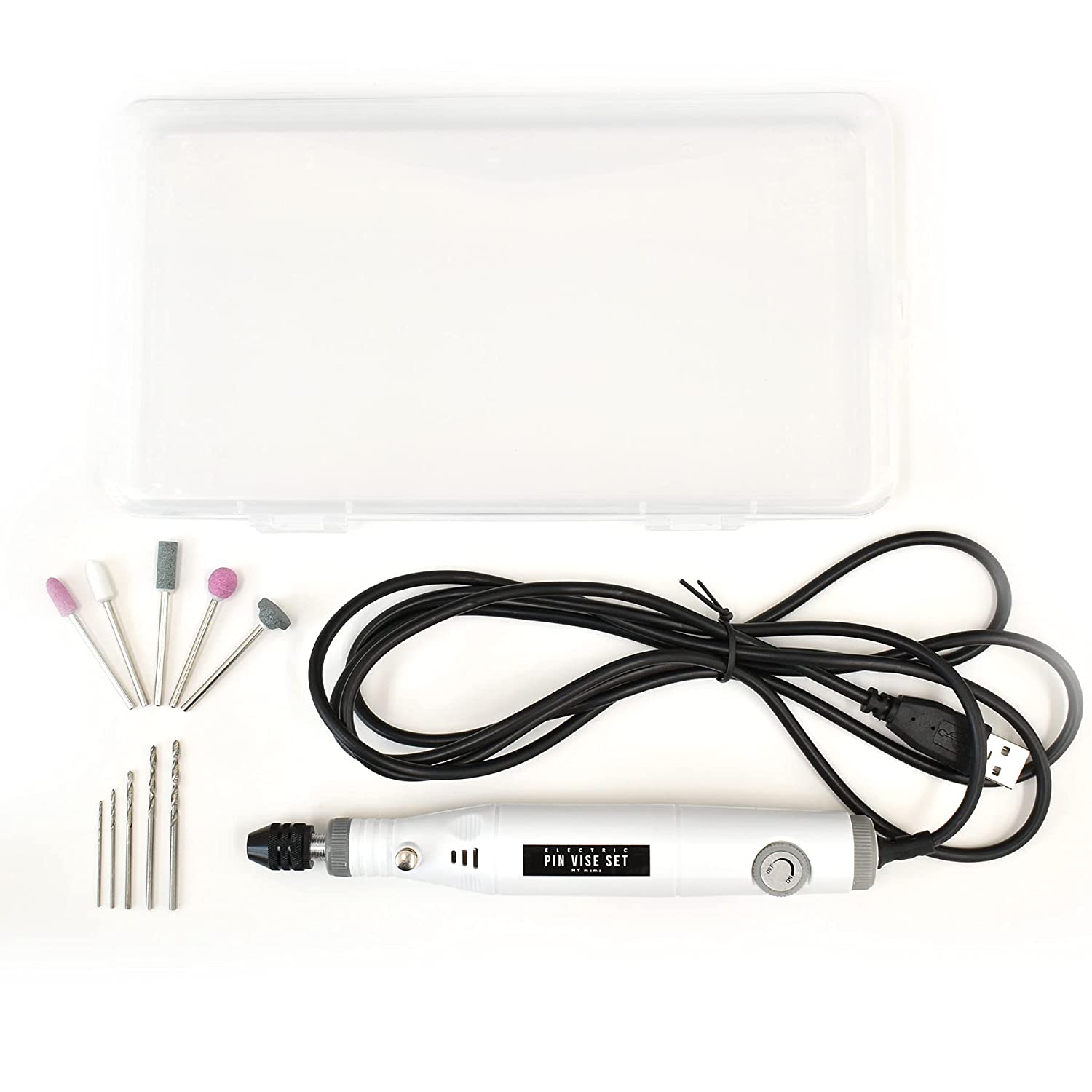 • MYmama 電動 ピンバイス ローラ 穴あけ ドリル やすりドリル5本 ヤスリ5本 計10本 レジン 工具 (電動ピンバイス本体)