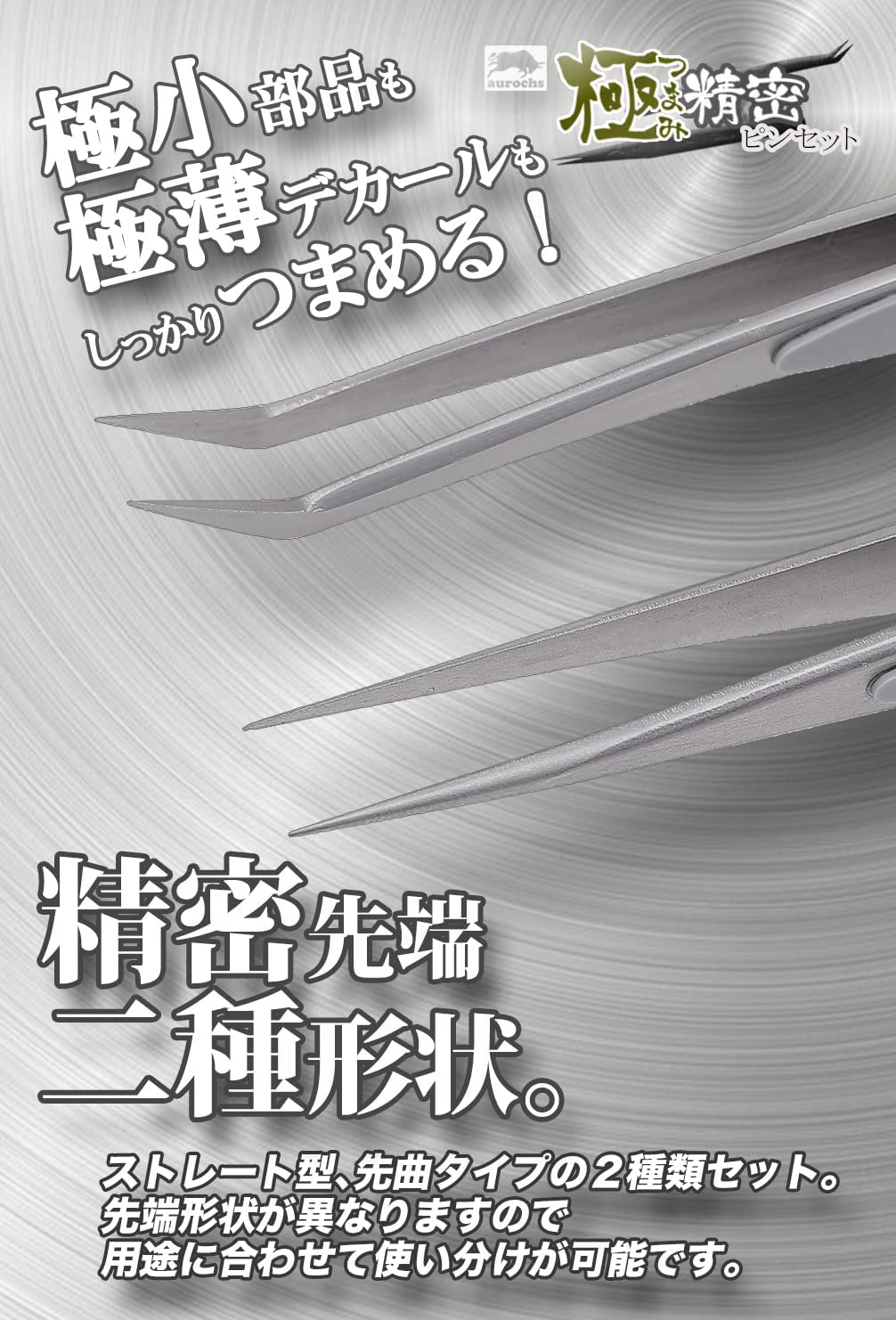 • aurochs 極ツマミ 精密 ステンレス ピンセット ストレート 先曲がり 2本セット ケース付