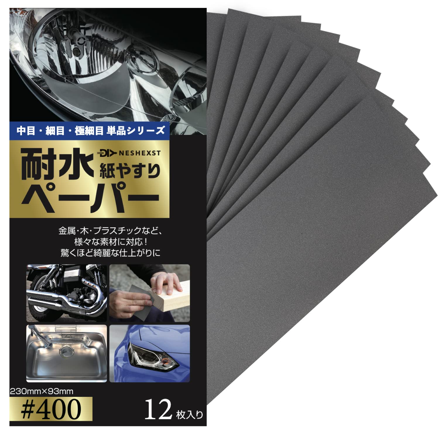 • NESHEXST(ネセクト) 紙やすり サンドペーパー 耐水ペーパー 紙ヤスリ 雑誌ト゛ゥーハ゜!掲載モデル メーカー3年保証 耐水ヤスリ (#400 12枚セット)