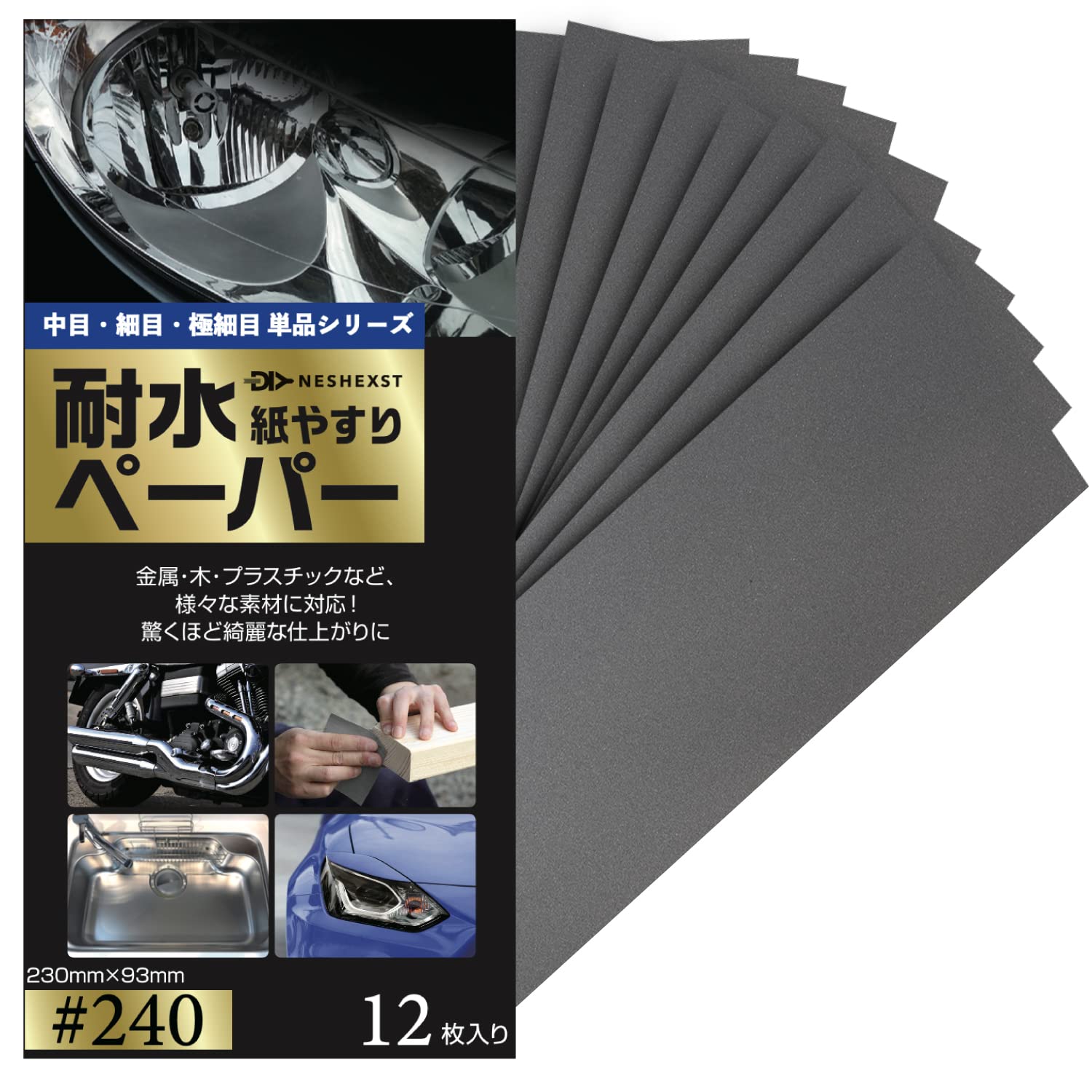 • NESHEXST(ネセクト) 紙やすり サンドペーパー 耐水ペーパー 紙ヤスリ 雑誌ト゛ゥーハ゜!掲載モデル メーカー3年保証 耐水ヤスリ (#240 12枚セット)