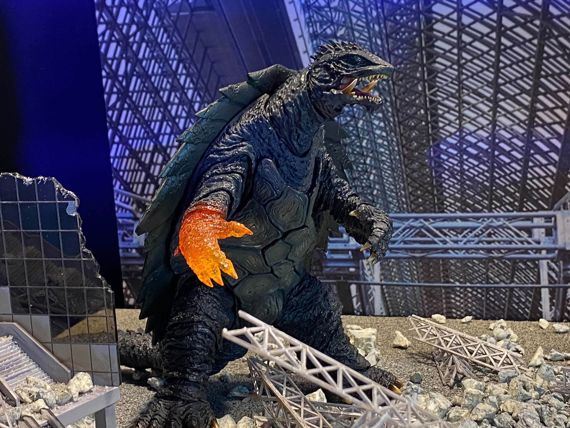 【魂ネイション】京都での決戦が再現された「S.H.MonsterArts」シリーズ「ガメラ」と「イリス」のジオラマが展示(3/7)