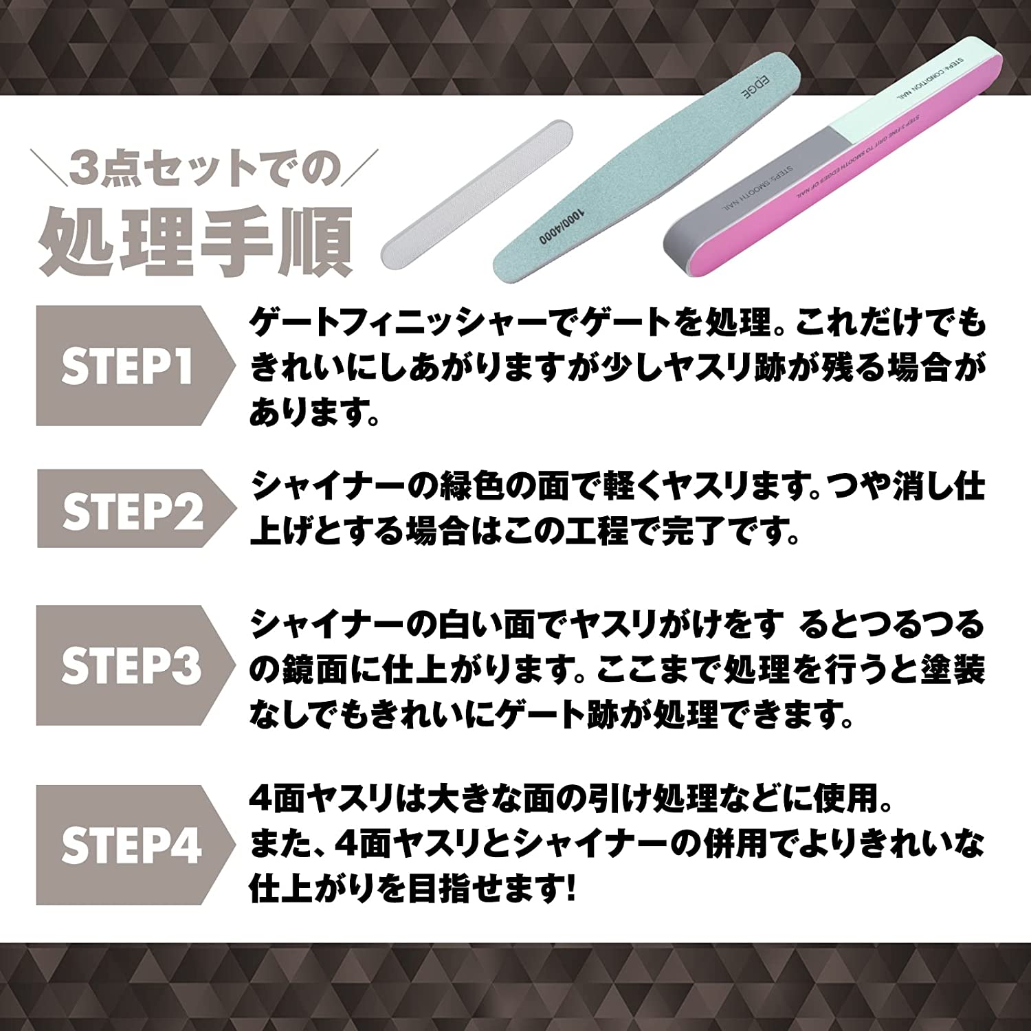 • @ROOMS アットツールシリーズ ゲートフィニッシャースターターセット ガラスヤスリ シャイナー 7STEP プラモデル ガンプラ ゲート処理用