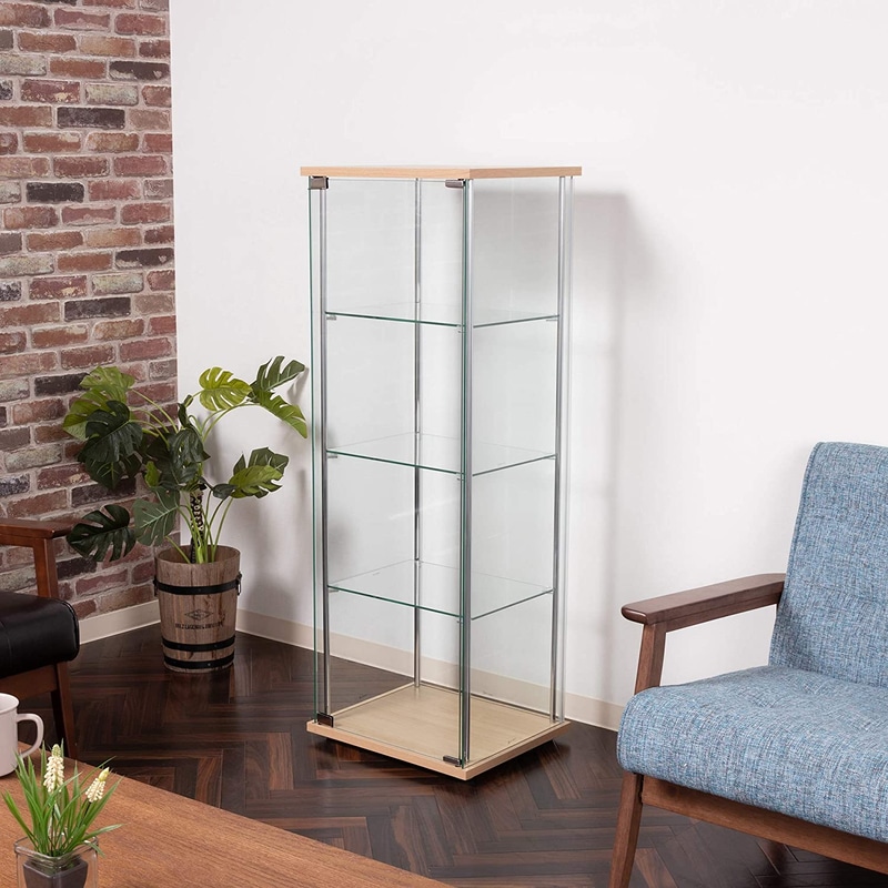 • 不二貿易 コレクションケース フィギュアケース 4段 幅42.5×奥行36.5×高さ120cm ナチュラル 全面ガラス 97340 【Amazon.co.jp限定】