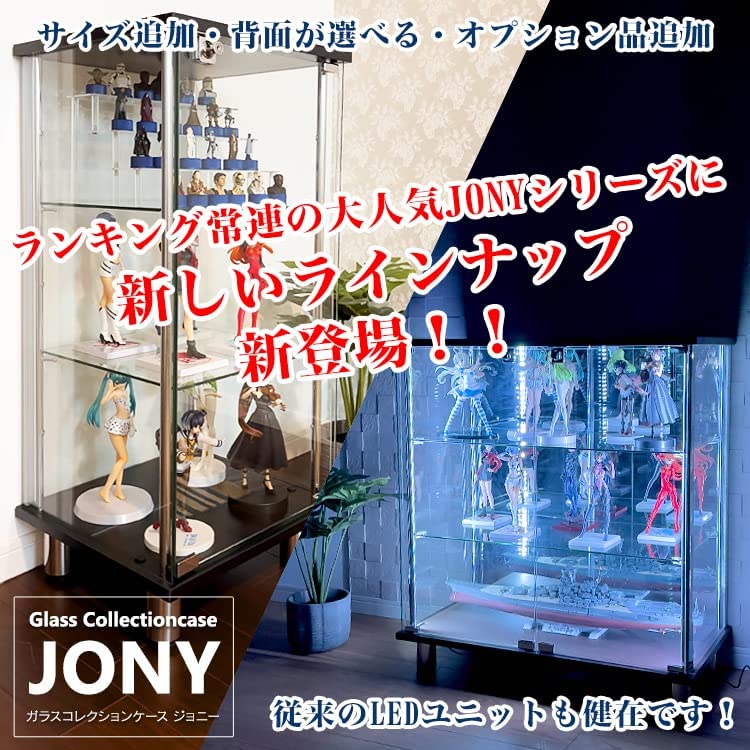 • ガラスコレクションケース JONY ジョニー 鍵付 ガラスケース ディスプレイラック 地球家具 コレクションラック (ガラスケース本体(スリム幅40cm ハイ)背面ミラータイプ+LEDセット, ホワイト)