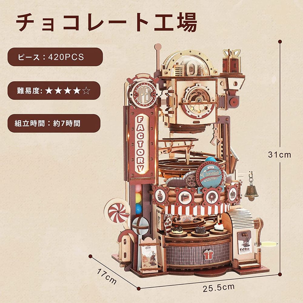 • Robotime 立体パズル 3D 木製パズル 脳トレパズル ウッドパズル クラフト プレゼント おもちゃ オモチャ 知育玩具 男の子 女の子 大人 入園祝い 新年 ギフト 誕生日 クリスマス 贈り物 軌道 レールおもちゃ キャンディー生産ライン チョコレート工場 2022最新 LGA02