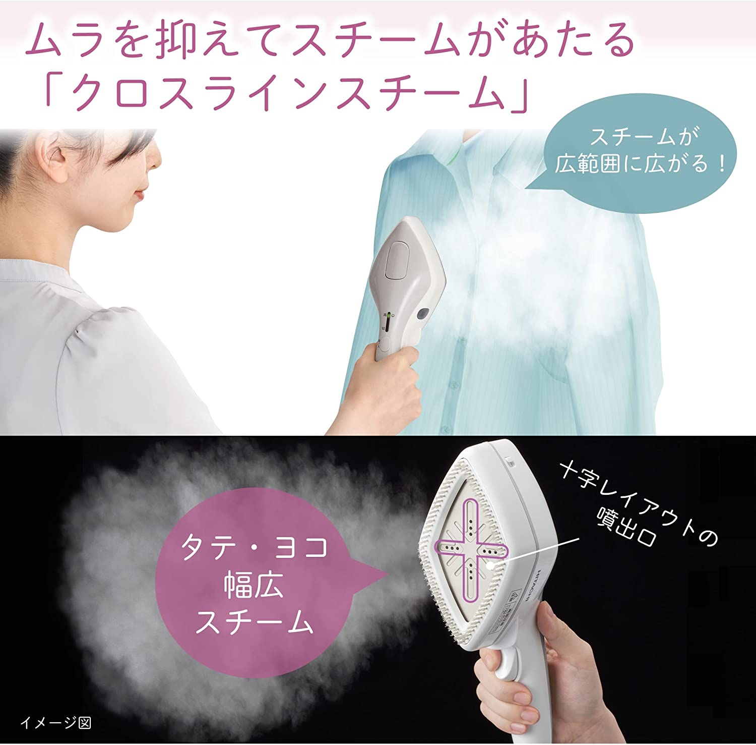 • 日立 衣類スチーマー スチームアイロン CSI-ST1BE H ライトグレー パワフルショットスチーム ブラシ付き