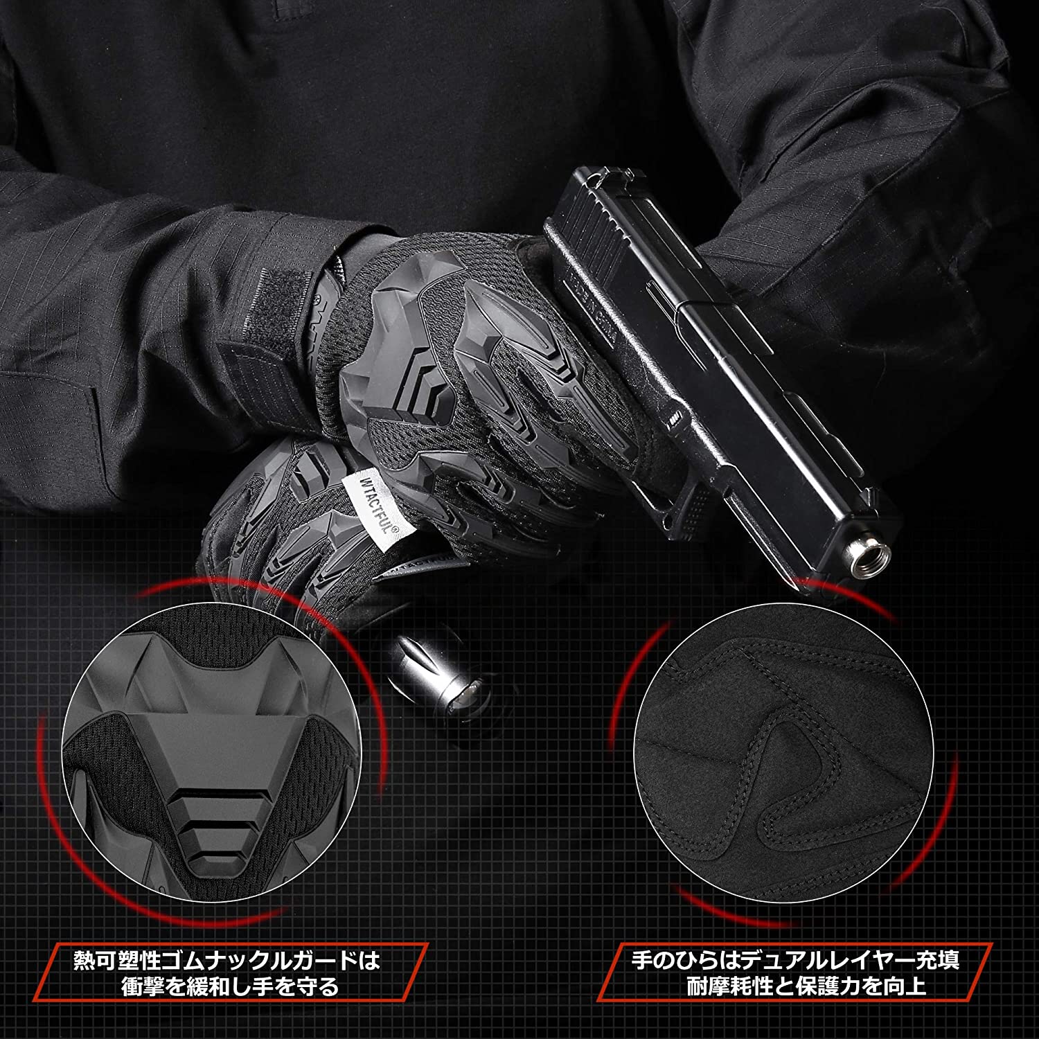 • WTACTFUL タクティカル グローブ スマホ対応 オリジナルグローブ マルチカム 迷彩 カモフラージュグローブ サバゲー バイク サバイバルゲーム アウトドアスポーツ用 ブラック XL-B65