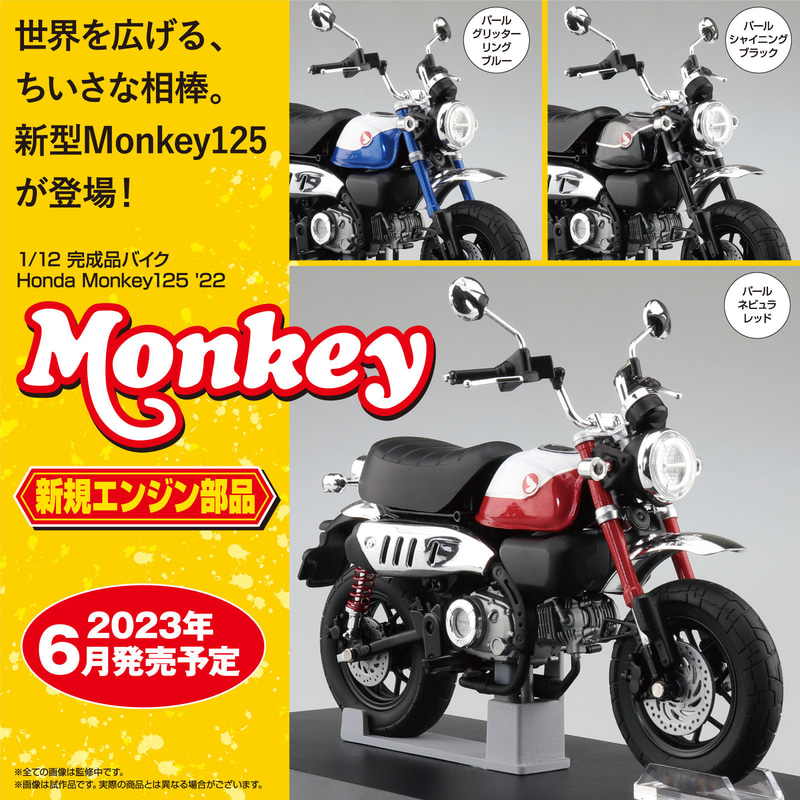 アオシマ、SKYNETブランドよりバイク「Honda モンキー」1/12スケール完成品モデル3種を10月に発売!