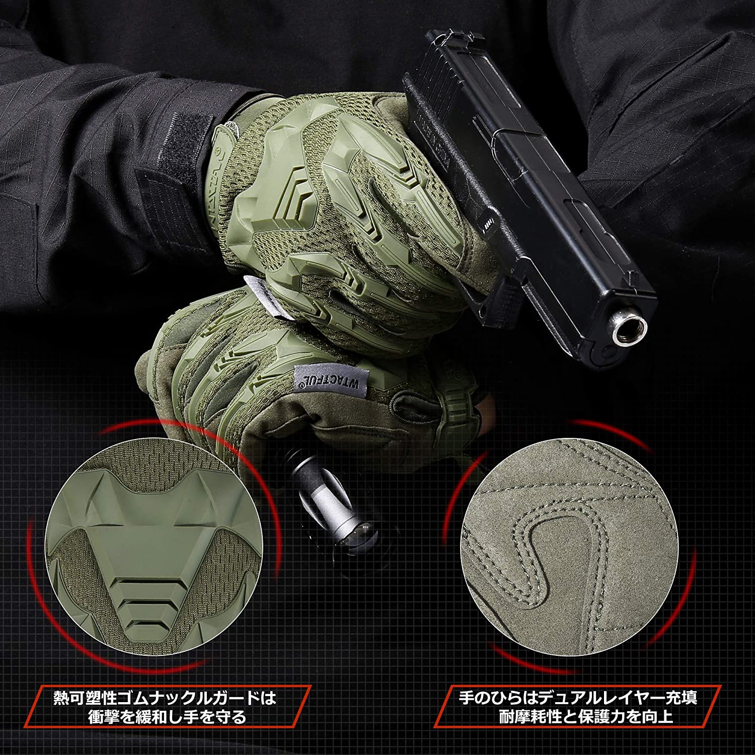 • WTACTFUL バイク グローブ スマホ対応 ハード ナックル バイク用 手袋 タクティカルグローブ