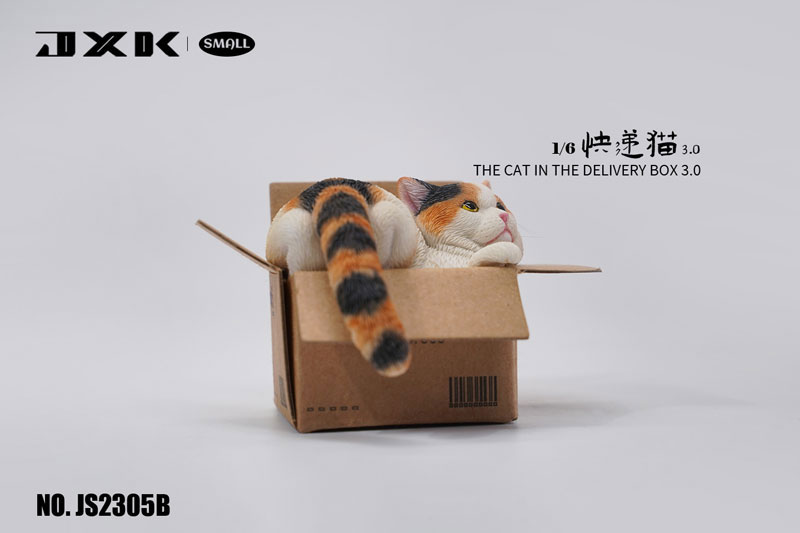 段ボールに入った猫を1/6スケールのフィギュアで表現! 茶トラや三毛など毛色違いの4種が予約開始(9/21)