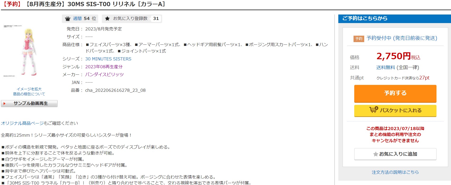 DMMにて、美少女プラモ「30MS」のリシェッタ、ティアーシャ、リリネル、ララネルの再入荷予定分の予約再開!(7/8)