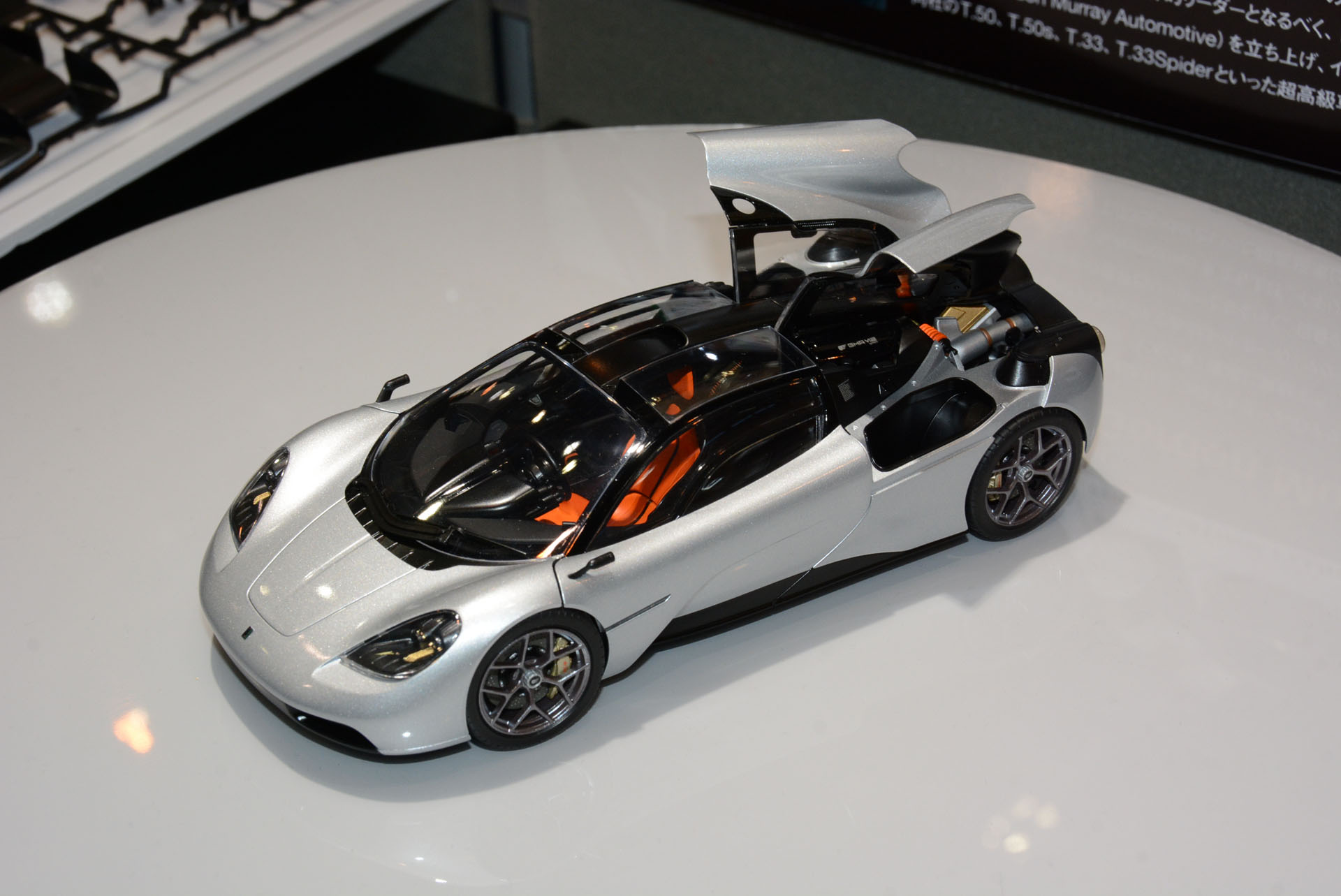 滑らかなフォルムが特徴的! スーパーカー「GMA T.50」のプラモがタミヤブースにて展示【#静岡ホビーショー】