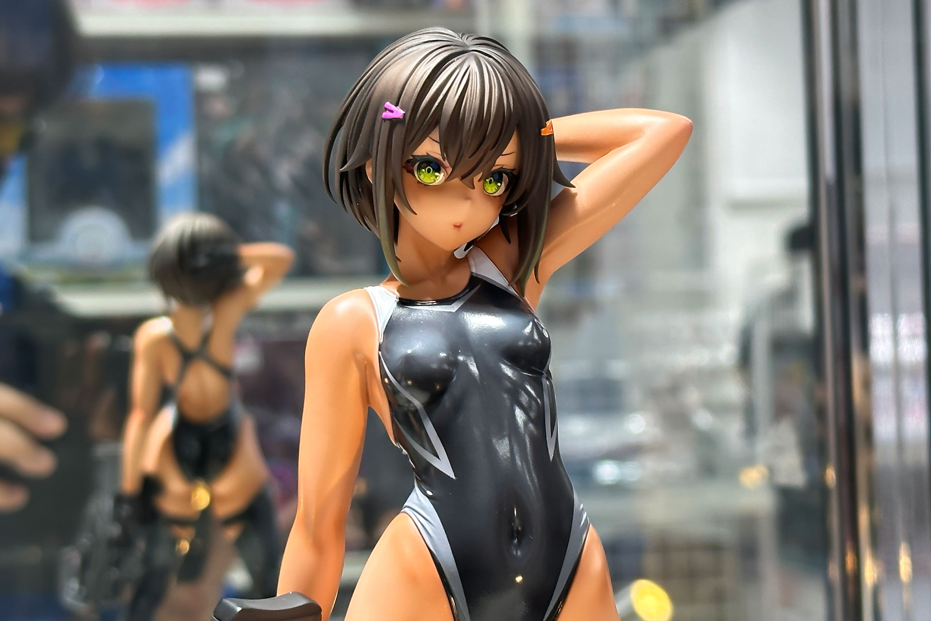 【あみあみ展示撮り下ろし】コウハイちゃんに2色のカラバリが追加!「水泳部のコウハイちゃん 赤色ラインの水着Ver.&青色ラインの水着Ver.」