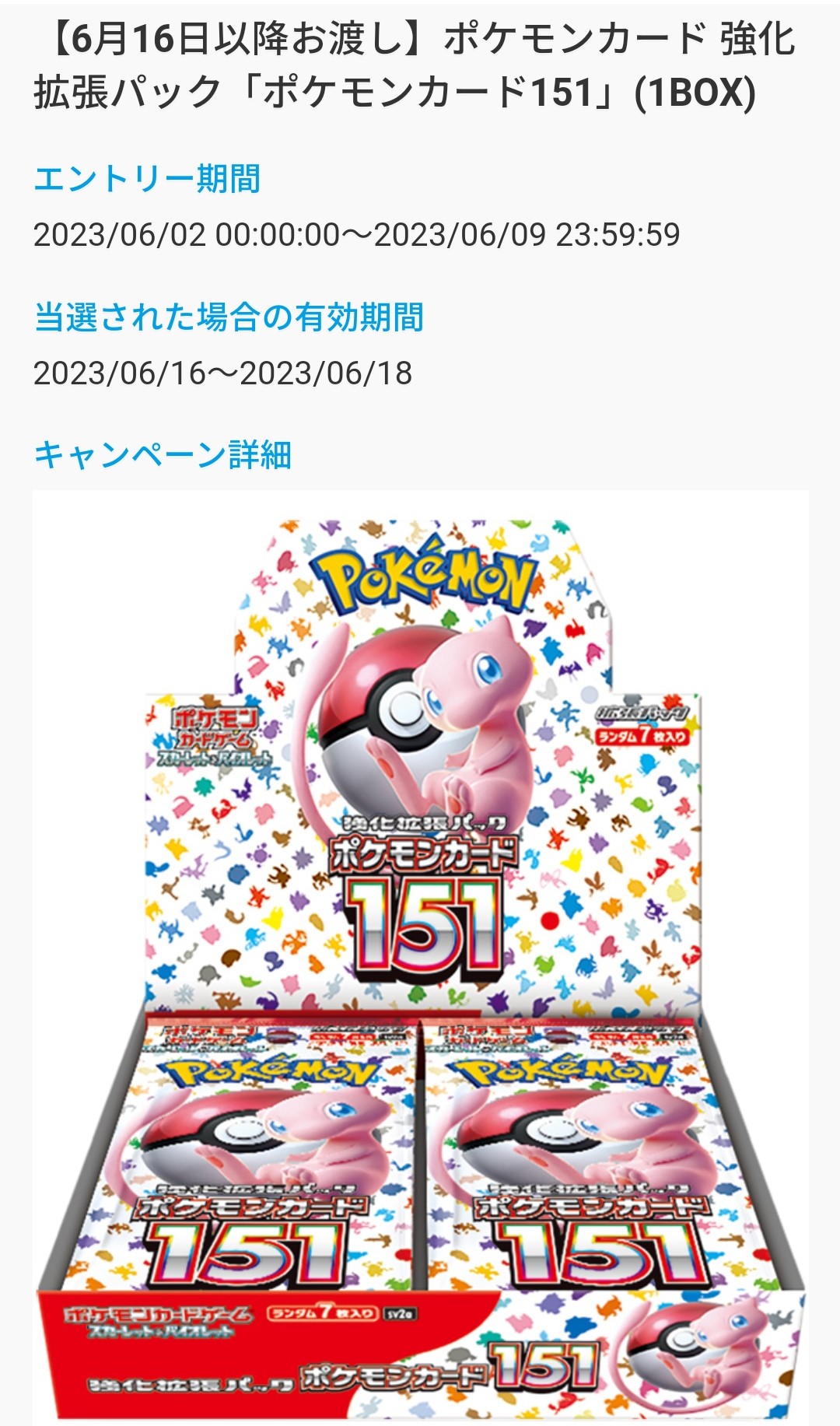 【6月6日更新】ポケカ拡張パック「ポケモンカード151」抽選販売まとめ