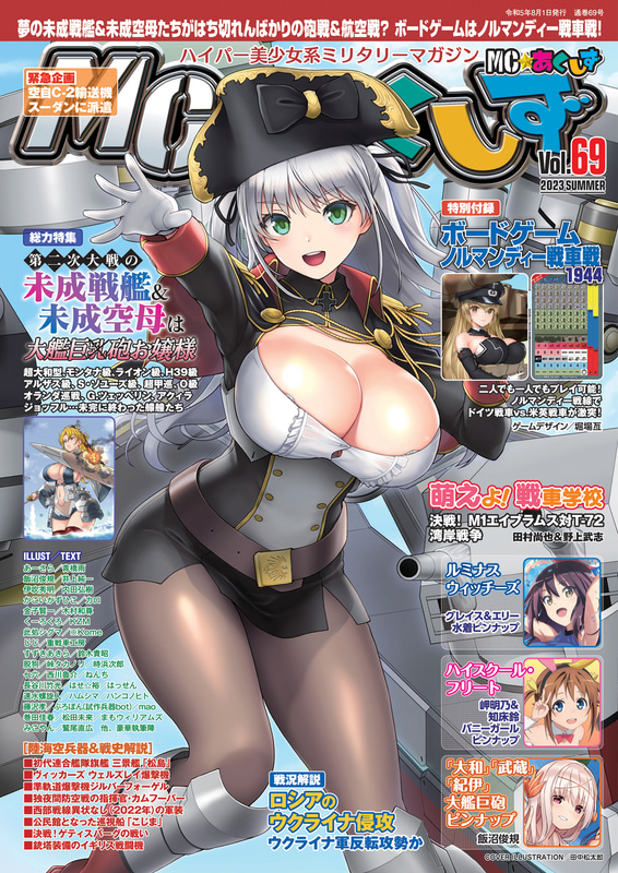 1人用ボドゲ「珊瑚海海戦1942」付美少女ミリタリー雑誌「MC☆あくしず2022年8月号」6月21日発売! 独ソ米英の対戦車攻撃機や自衛隊の自走砲などが特集