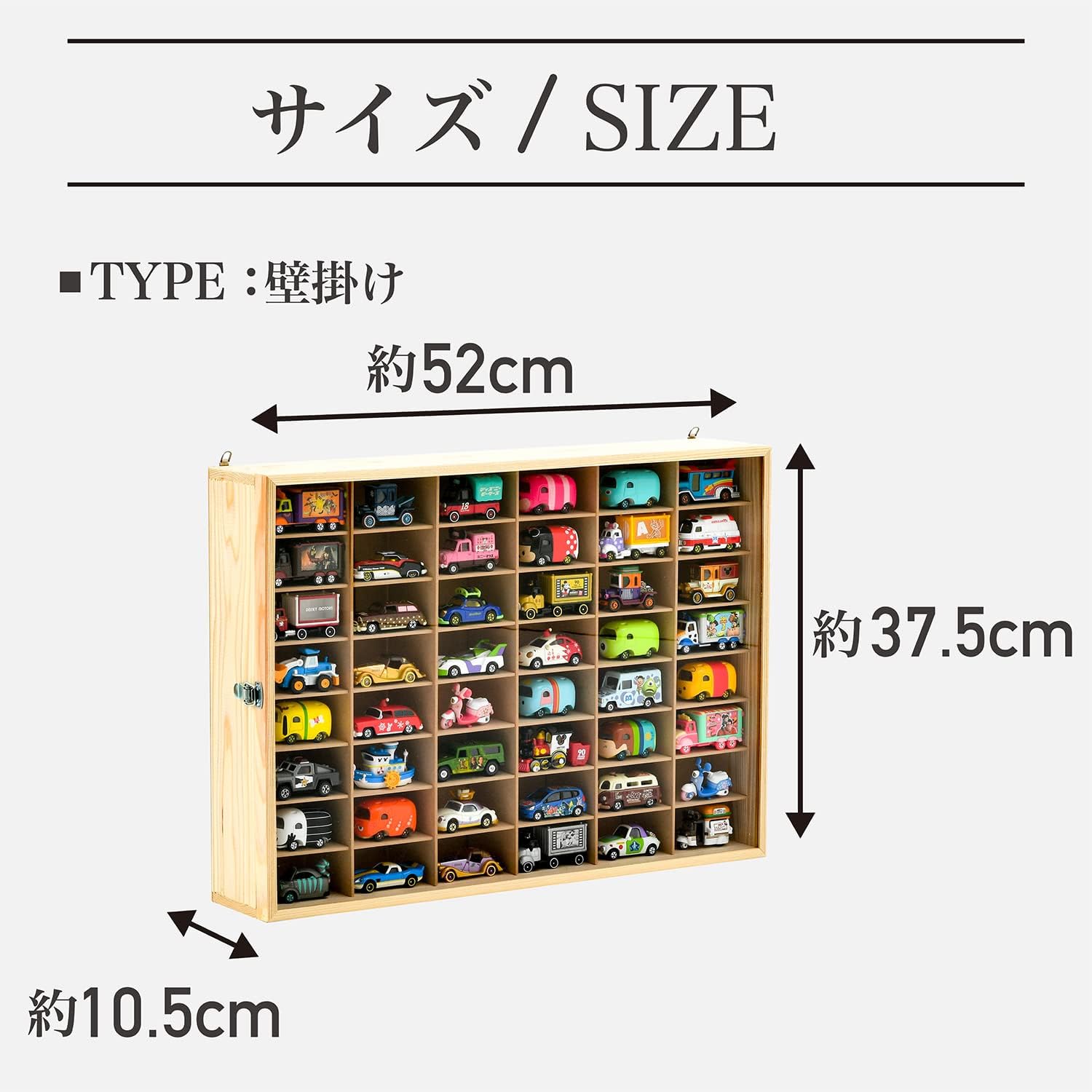 • もりもり工房 ミニカーケース (8×6マス / 最大96台収納可能 / 木製/壁掛け) ミニカー 収納 コレクションケース 壁掛け用 (高さ約37.5cm 幅約52cm 奥行き約10.5cm) リンネル掲載 トミカ