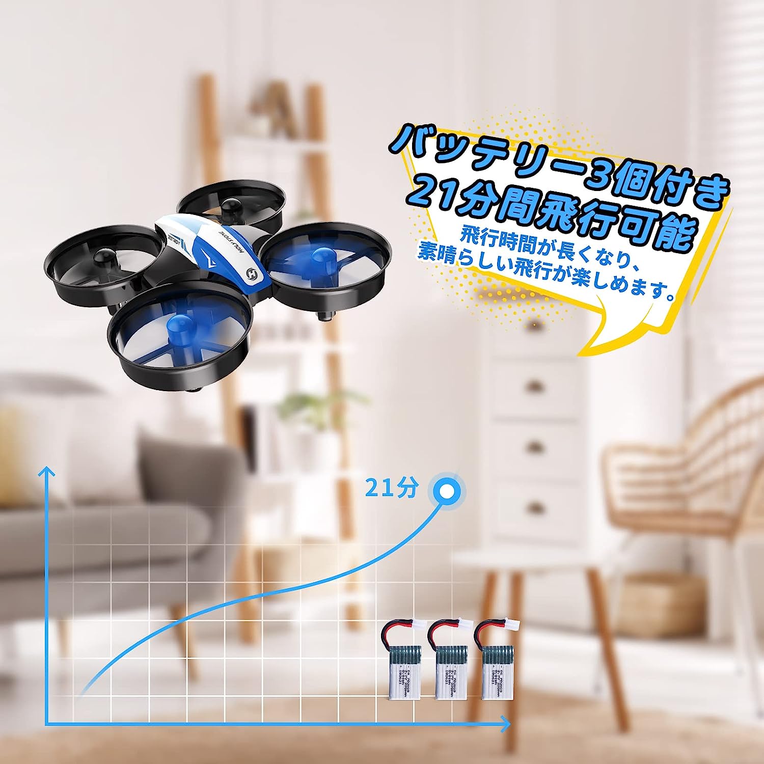 • Holy Stone ドローン ミニドローン 室内 初心者 収納ケース付き 100g未満 バッテリー3個付き 飛行時間21分 安定性 高度維持 モード1/2自由転換 ヘッドレスモード搭載 国内認証済み HS210B 青