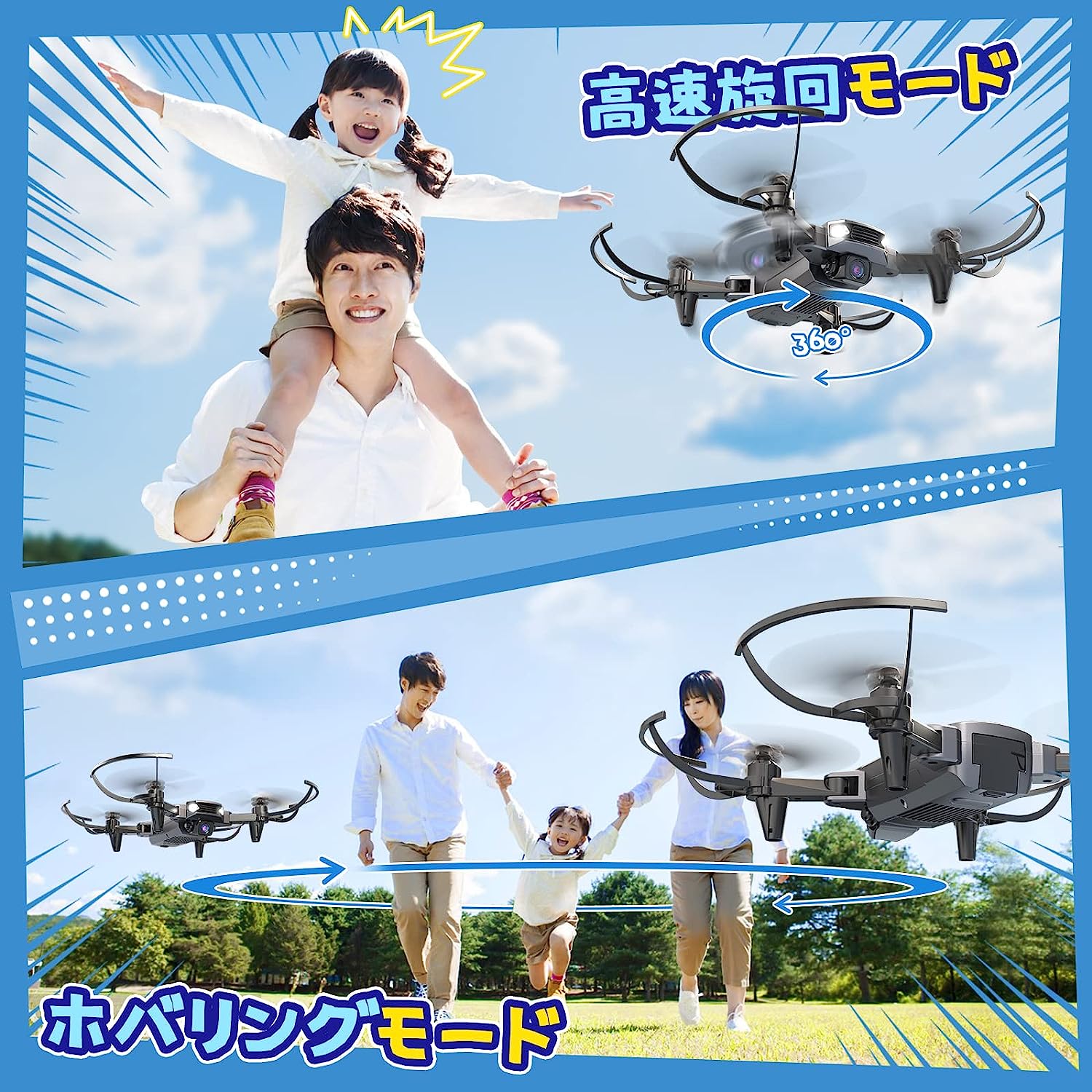 • DEERC ドローン 100g未満 カメラ付き こども向け 折りたたみ式 1080Pカメラ 70°調整可能 FPVリアルタイム 操作時間20分 小型 室内 ミニドローン 初心者 子供用 手投げテイクオフモード 軌跡飛行モード 2.4GHz モード1/2自由転換可 国内認証済み D40