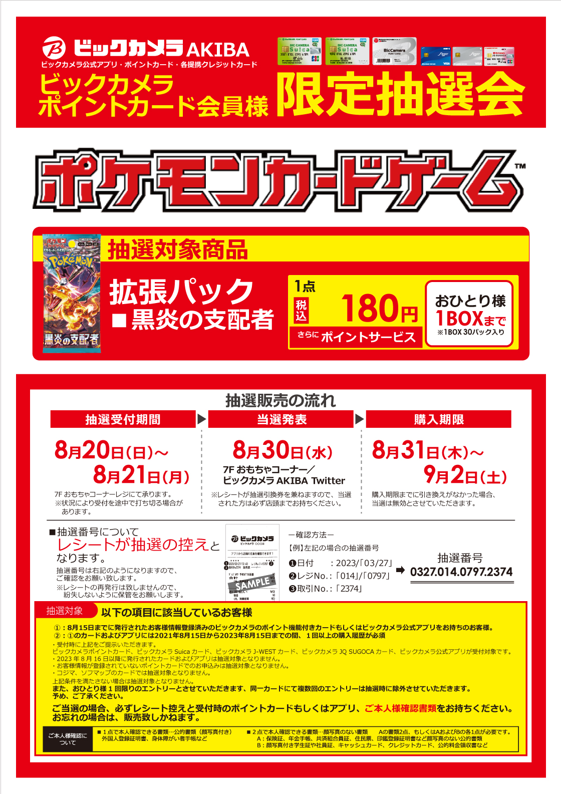 ビックカメラAKIBA、ポケカ拡張パック「黒炎の支配者」の抽選販売を8月20日より実施!(2/2)