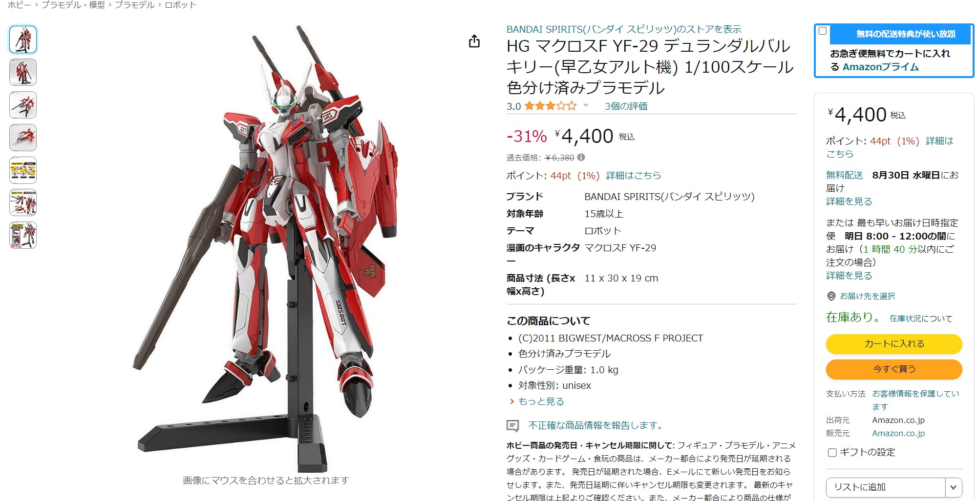 「HG 1/100 YF-29 デュランダルバルキリー(早乙女アルト機)」レビュー