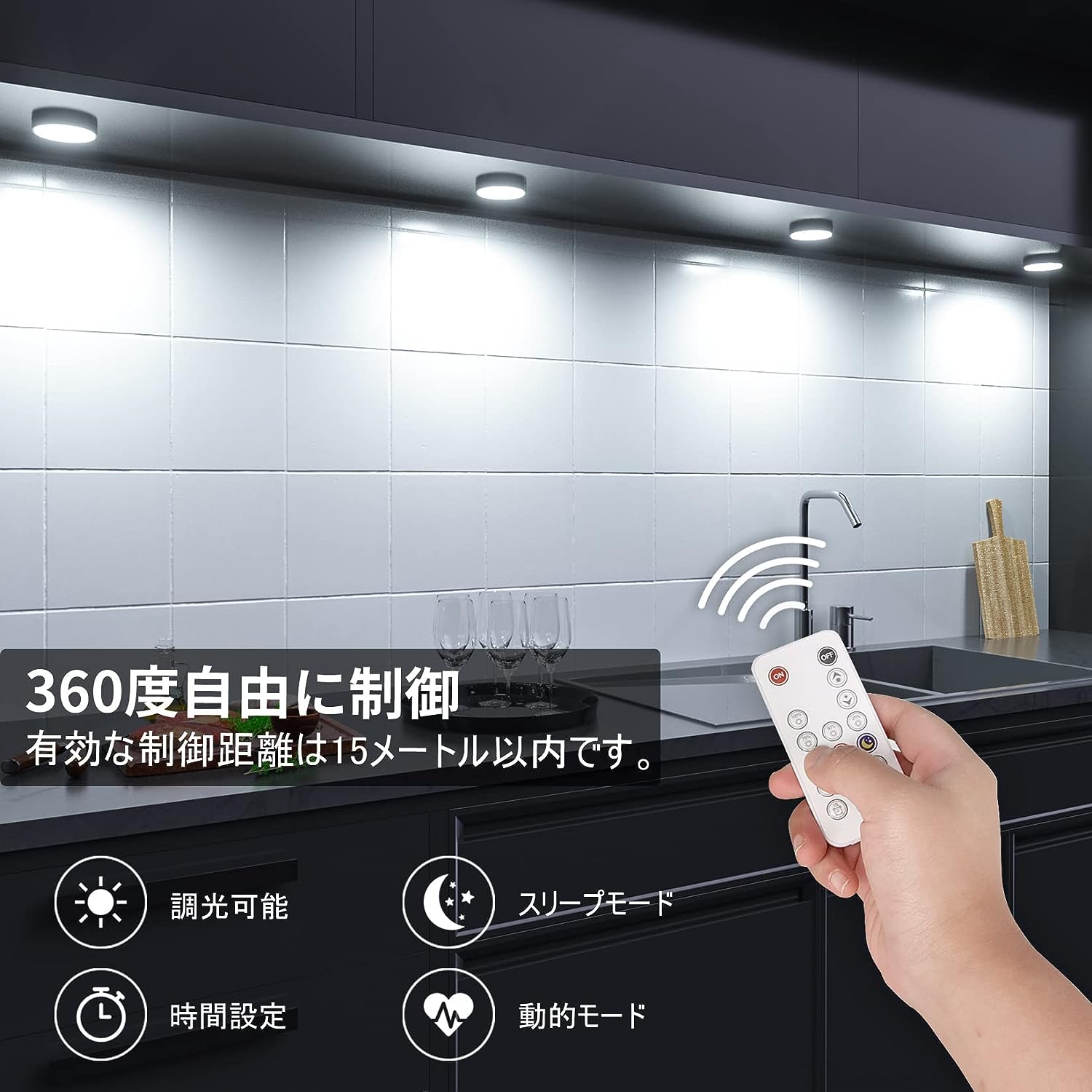 • Wobane キャビネットライト RFリモコン付き 電球色 6個セット 連接可能 ショーケース照明 調光可能 時間設定 360制御 LEDキッチンライト 明るい 取付簡単 間接照明 車中泊車用/棚下/フィギュア照明/フィギュアケース/コレクションケース用