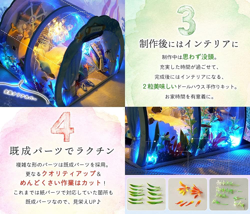 • moin moin 1/24 ドールハウス ミニチュア 手作りキット セット 【 日本語 説明書 】 360度 水族館のような 水の中のお家 幻想的 オーシャン 海 LEDライト 2201dh288