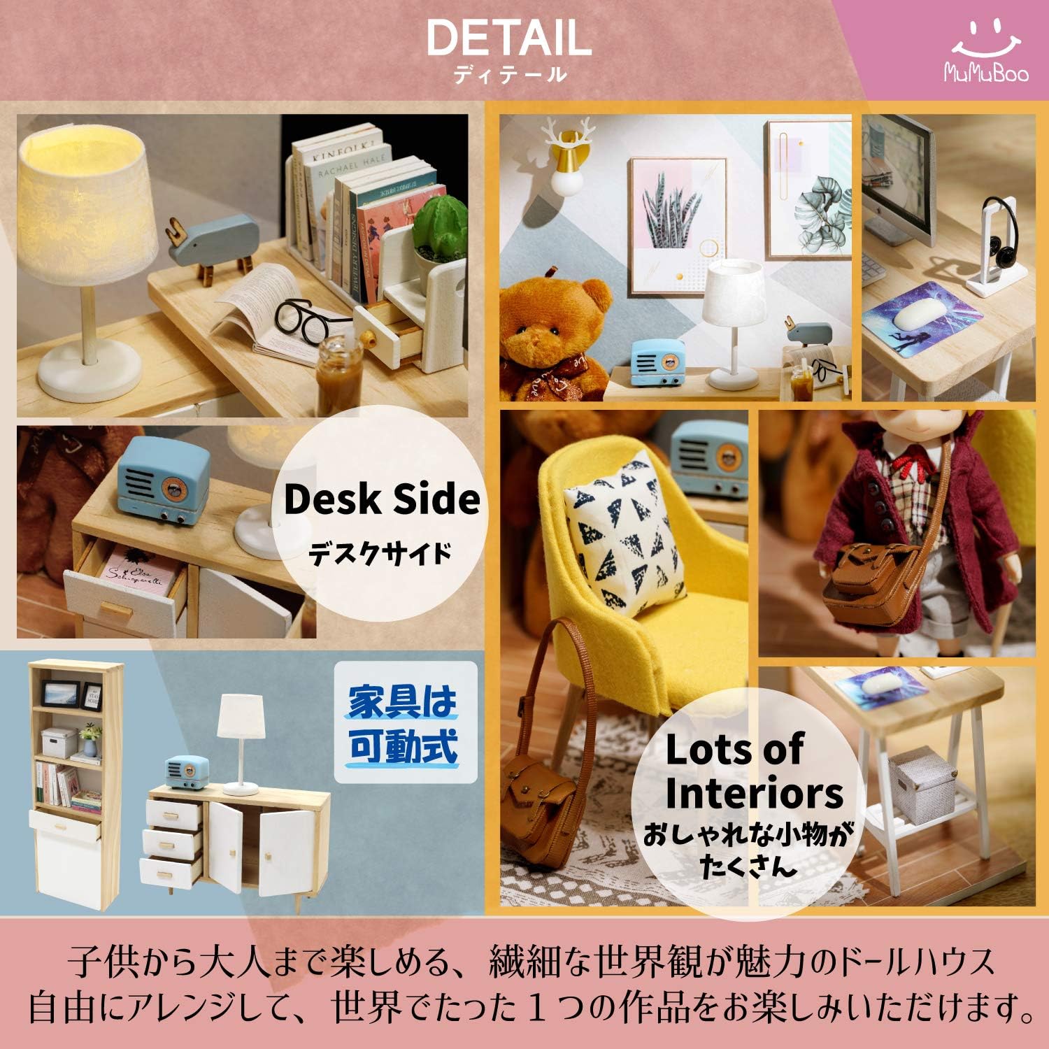 • [MuMuBoo] ドールハウス 日本語説明書付属 初心者 手作りミニチュアキット ミニチュア家具キット DIY 木製 【 LEDライト 防塵用ディスプレイカバー 付属 】 (SUNSHINE STUDY)