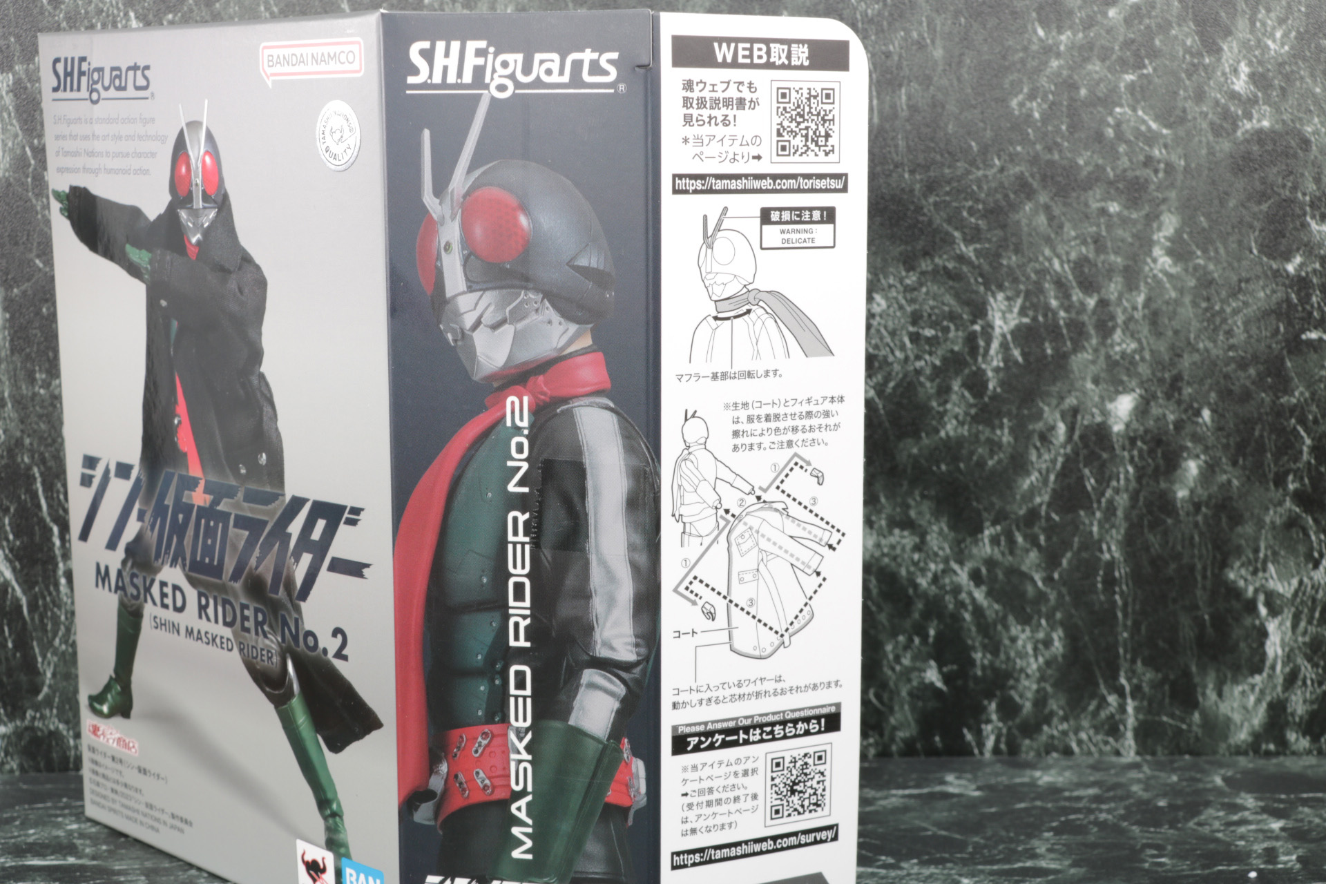 「S.H.Figuarts 仮面ライダー/本郷猛(シン・仮面ライダー)」は、マスクオフの素顔と変身状態の両方を楽しめるお得な仕様。布マフラーも魅力だ【魂ネイション】