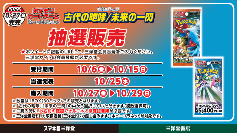 ポケカ拡張パック「古代の咆哮/未来の一閃」の抽選販売が三洋堂書店にて受付開始!(1/3)