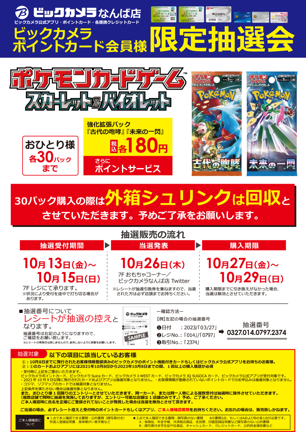 ビックカメラ、ポケカ「古代の咆哮/未来の一閃」抽選販売を10月13日に受付開始(3/3)