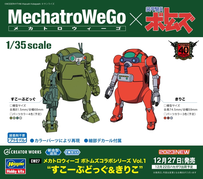 放送から40周年のアニメ「装甲騎兵ボトムズ」よりプラモデル「HG スコープドッグ」本日発売