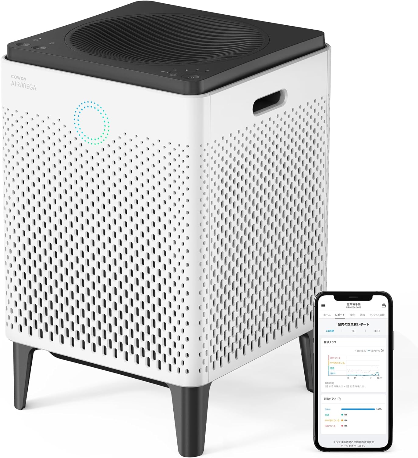 • COWAY 空気清浄機 AIRMEGA 300S [Amazon Alexa対応]2面吸引 38畳 0.01μm対応 ウイルス PM2.5 ペット 脱臭 スマート/花粉/おやすみモード コーウェイエアメガ ホワイト AP-1515G(W)